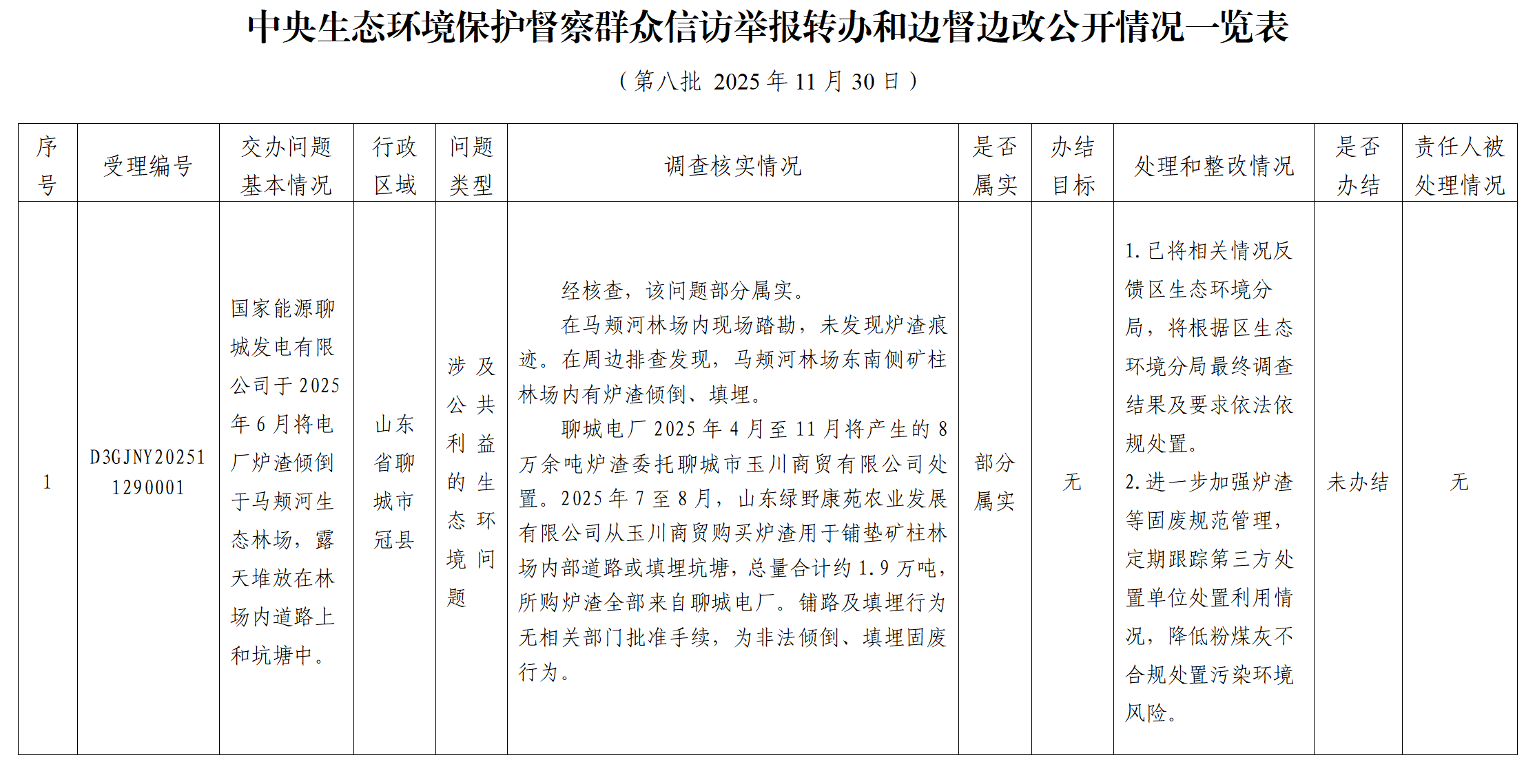中央生态环境保护督察群众信访举报转办和边督边改公开情况一览表(第八批 2025年11月30日)