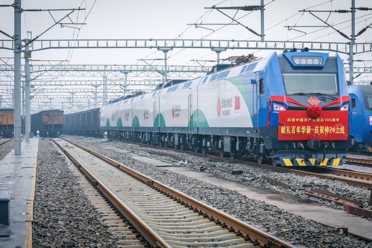 全球最大单机功率、最大单机牵引力、最大单机电制动力、最长单机机车长度以及轴数最多的列车——“国能号”24轴列车