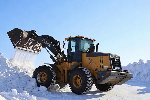 图为该厂铲车正在清理道路上积雪