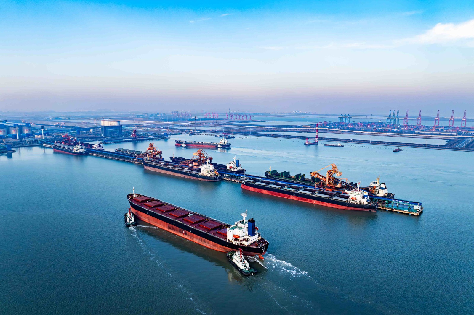 图为船舶准备靠泊黄骅港务三、四期码头